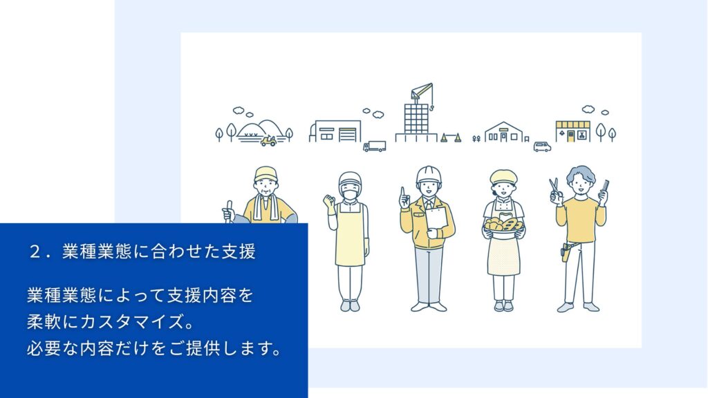 巷のコンサルティングにありがちな“無駄なポイント”を全て省いた『本当に事業者のためになる』サポート内容となっています。
